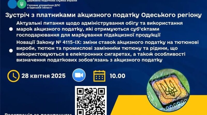 ЗАПРОШУЄМО БІЗНЕС-СПІЛЬНОТУ ОДЕЩИНИ ВЗЯТИ УЧАСТЬ У ЗУСТРІЧІ З ФАХІВЦЯМИ УПРАВЛІННЯ КОНТРОЛЮ ЗА ПІДАКЦИЗНИМИ ТОВАРАМИ ГОЛОВНОГО УПРАВЛІННЯ ДПС В ОДЕСЬКІЙ ОБЛАСТІ З НАСТУПНИХ ПИТАНЬ