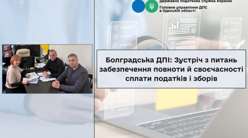 БОЛГРАДСЬКА ДПІ: ЗУСТРІЧ З ПИТАНЬ ЗАБЕЗПЕЧЕННЯ ПОВНОТИ Й СВОЄЧАСНОСТІ СПЛАТИ ПОДАТКІВ І ЗБОРІВ