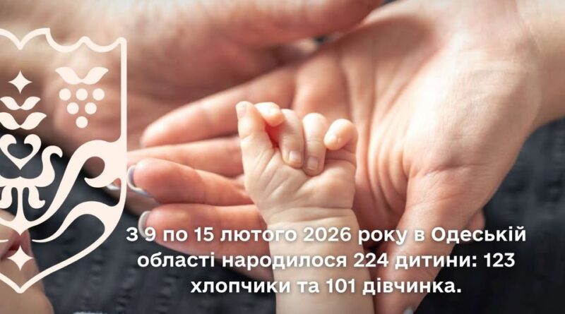 З 9 ПО 15 ЛЮТОГО 2026 РОКУ В ОДЕСЬКІЙ ОБЛАСТІ НАРОДИЛОСЯ 224 ДИТИНИ: 123 ХЛОПЧИКИ ТА 101 ДІВЧИНКА