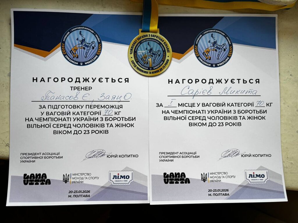 Вагомого успіху на чемпіонаті досяг Сарієв Микита — уродженець Арцизької громади, який виборов 1 місце у ваговій категорії до 70 кг та став чемпіоном України U23 з вільної боротьби.