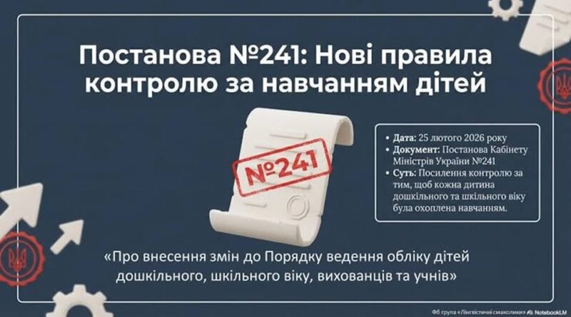 Уряд постановою від 25.02.2026 № 241 вніс зміни до Порядку ведення обліку дітей дошкільного та шкільного віку, вихованців та учнів, затвердженого постановою Кабінету Міністрів України від 13.09.2017 № 684, якими посилено контроль за обліком вихованців закладів дошкільної освіти та учнів закладів загальної середньої освіти. Вказані зміни спрямовані на вдосконалення механізмів взаємодії між закладами освіти, службами у справах дітей і правоохоронними органами. Ухвалені зміни передбачають більш оперативний обмін інформацією про дітей, які не охоплені навчанням, що дозволить своєчасно реагувати на такі випадки та вживати необхідних заходів у межах законодавства. Що передбачають[…Читати далі…]