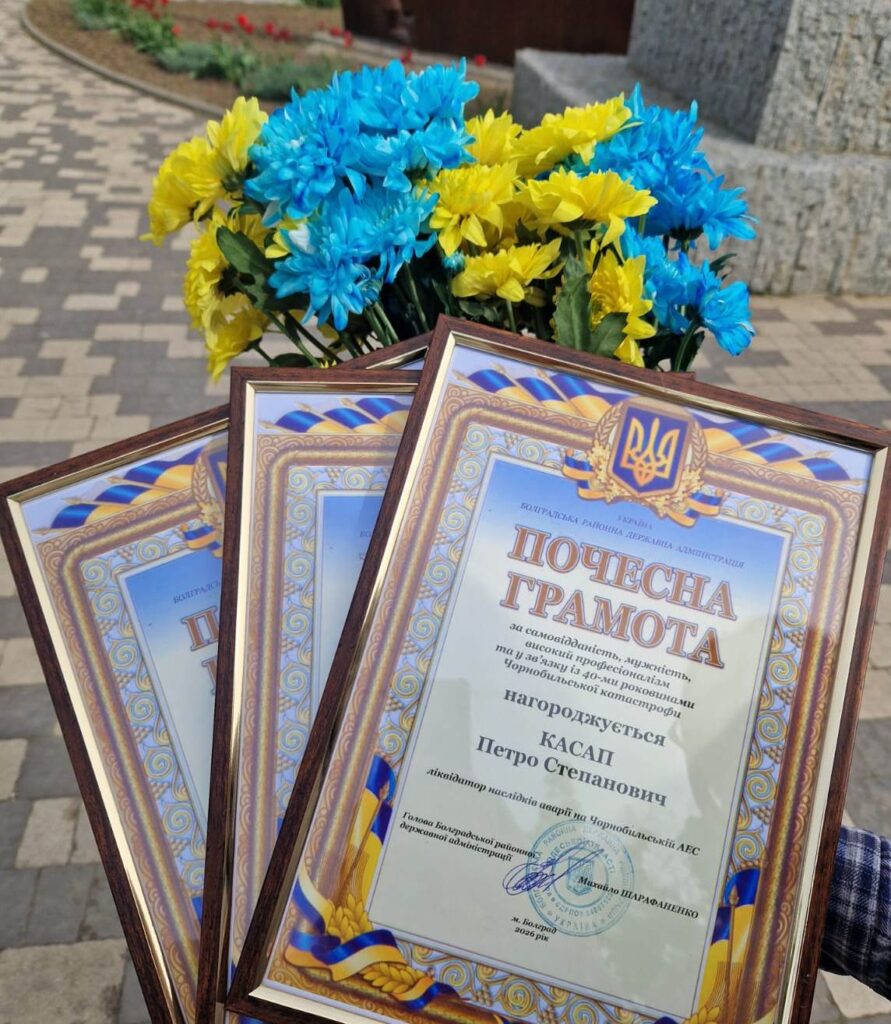 Сьогодні представники місцевої влади та підростаюче покоління об’єдналися, щоб подякувати нашим землякам-ліквідаторам. Учасників ліквідації аварії на ЧАЕС нагородили Почесними грамотами Болградської районної державної адміністрації, Болградської районної та міської рад. Особливим моментом заходу став зв’язок поколінь: поруч із офіційними нагородами ліквідатори отримали пам’ятні знаки та вимпели з рук дітей.